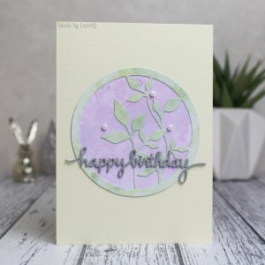 Anyway, the colours for this week Color Throwdown Challenge are beautiful (mauve, green and cream) so I made a couple of distress oxide panels (milled lavender and bundled sage) which I then used for my die cut image. Once I had adhered the circle die to my cream base card, I added a Savvy Stamps sentiment, which I had originally cut in white. But something didn’t seem quite right so I changed to grey cardstock which I felt worked much better! Finally I added a few pearls to complete my card.