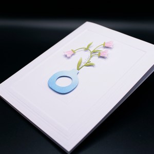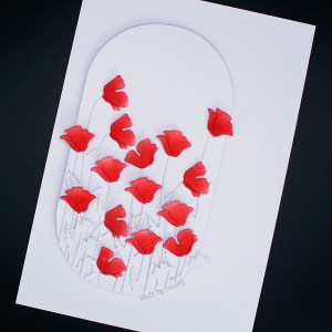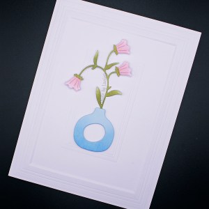 I used a couple of shades of green ink to create backgrounds that I then die cut. I partially cut a couple of card bases to create a shaped card base and adhered the die cut trees on top, hiding the section of the folded card that was not die cut.