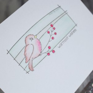 I decided to use a sketch from a new-to-me challenge, TGIF Challenges, so my first step was to choose some patterned paper. I had my doubts about using a gift-themed paper as I was a bit concerned that it would be too matchy-matchy… but I think it works OK in the end. After embossing the image, I coloured it using my Twinkling H2O paints and then adhered it to my base card using sticky fixers. Et voila! Super quick and easy Christmas card done! Must remember this design when I create cards for the Caring Hearts drive later this year.