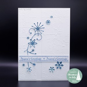 For the background I used stencils by Taylored Expressions. I was going to add splatters or stamped dots but in the end decided that a few sequins would work well plus I could play around with their placement without committing!
