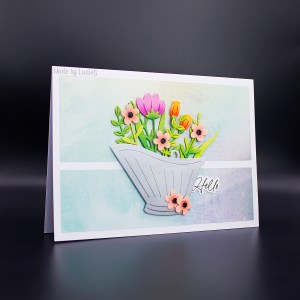 Today I’m playing along with this week’s challenge at Freshly Made Sketches. Cecile has shared a fabulous arty sketch and I totally thought I would use a die cut flower as the focal image… until I sat down at my craft table!