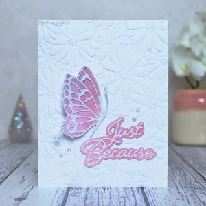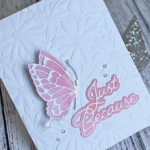I’ve used the beautiful Domed Window Folder by Memory Box – it embosses a beautiful window frame and also cuts out the window panes too. I waited a LONG time for this one (bought in October and finally arrived in January), but it was worth the wait.
