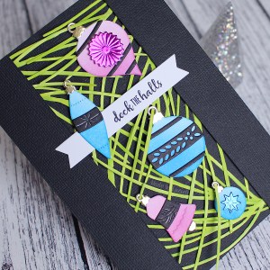 So onto the card! To start with, I created an ink-blended background section using distress inks and then stamped, coloured and fussy cut the main image from the Breathe mini set (30-473). Next, I cut some flourishes and butterflies from vellum using dies from the Flourish and Butterflies die set, 51-198) and adhered everything to my card base. Finally I stamped the sentiment from the Breathe set.