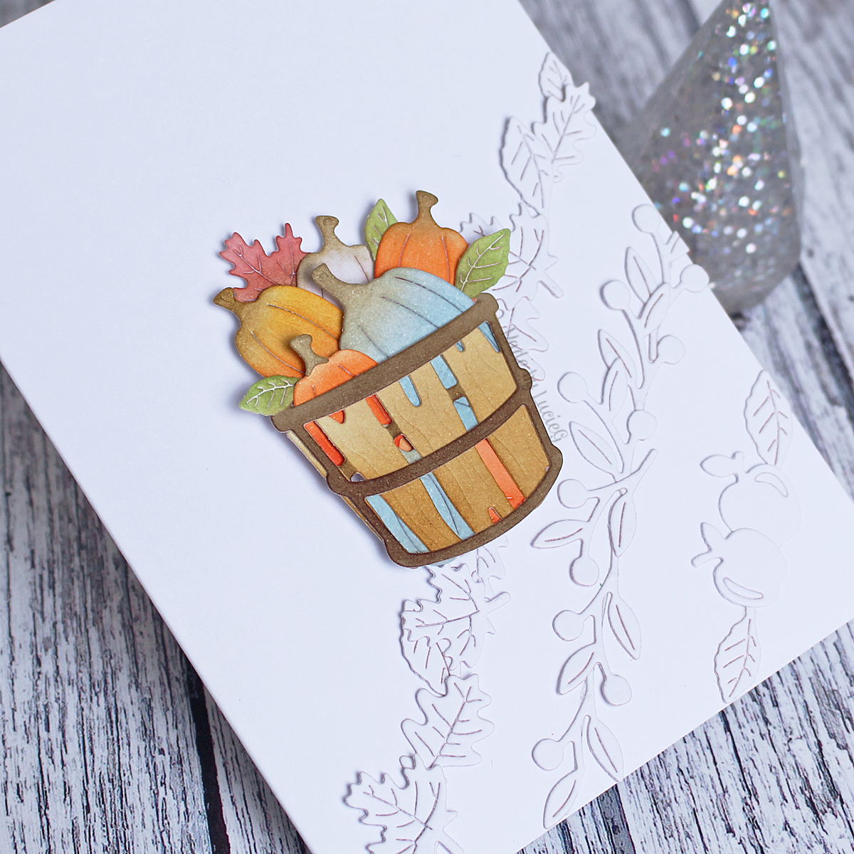 I blended various distress inks and then embossed the background before lifting some ink from the berries. I then added a sentiment from My Favorite Things to complete my entry.