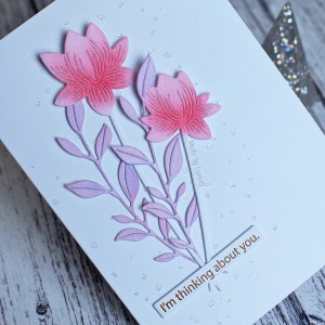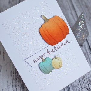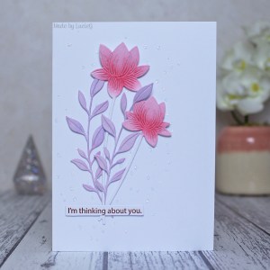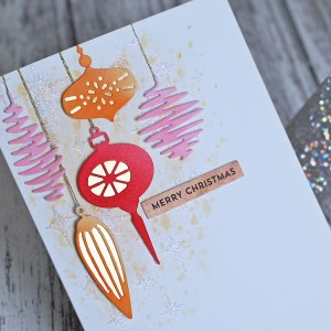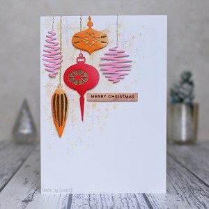 I decided to use an older Memory Box die, the beautiful Catalina Wreath, which is from 2011! It actually belongs to my mum but has lived in my collection for a while as she has taken a break from cardmaking. I coloured it with distress oxide inks and added a few white Nuvo drops. I stencilled some Nuvo glitter paste onto a piece of ivory card and then adhered the wreath and added a Creative Expressions sentiment to complete my take.