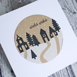 I knew I wanted to use the fabulous new Penny Black Grazing Fawn die (51-672) as my focal point again and I also wanted to stay true to my preferred CAS style. This sketch had lots of layers so I decided to create an ink-blended/stencilled base layer with the Penny Black Leaf Frolic Stencil (25-019) and added a subtle piece of patterned paper on top of that. The sentiment is from the Hello Deer mini stamp set (30-766) (partially stamped).