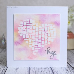 For today’s card, I used the lovely Simon Says Stamp Mosaic Heart stencil with one of my favourite distress ink combos (abandoned coral, spiced marmalade and seedless preserves) and I’m happy to say that I got an impression that I liked at only my second attempt this time! I trimmed down my panel and added a Simon Says Stamp die cut sentiment before adhering the panel to a card base.