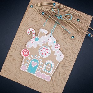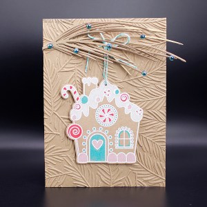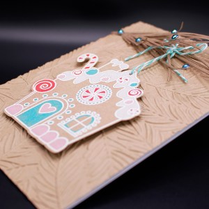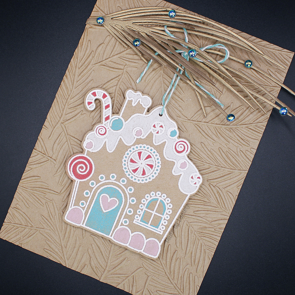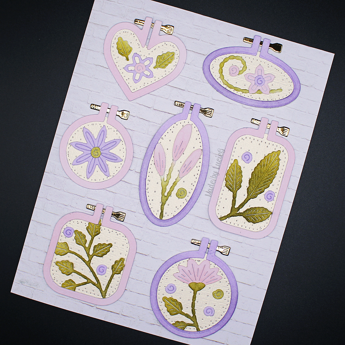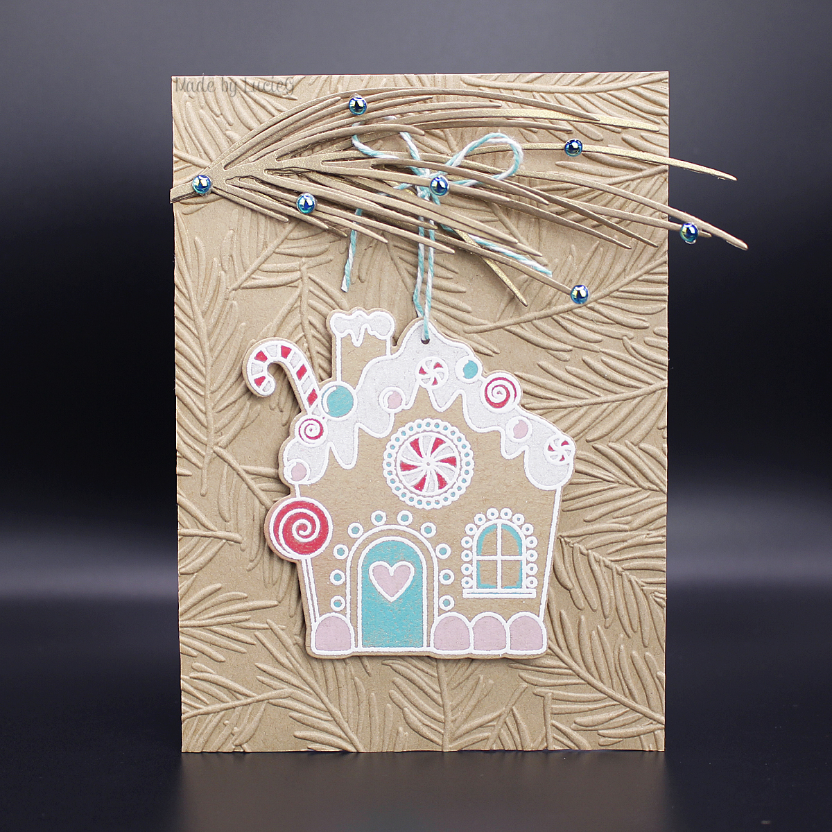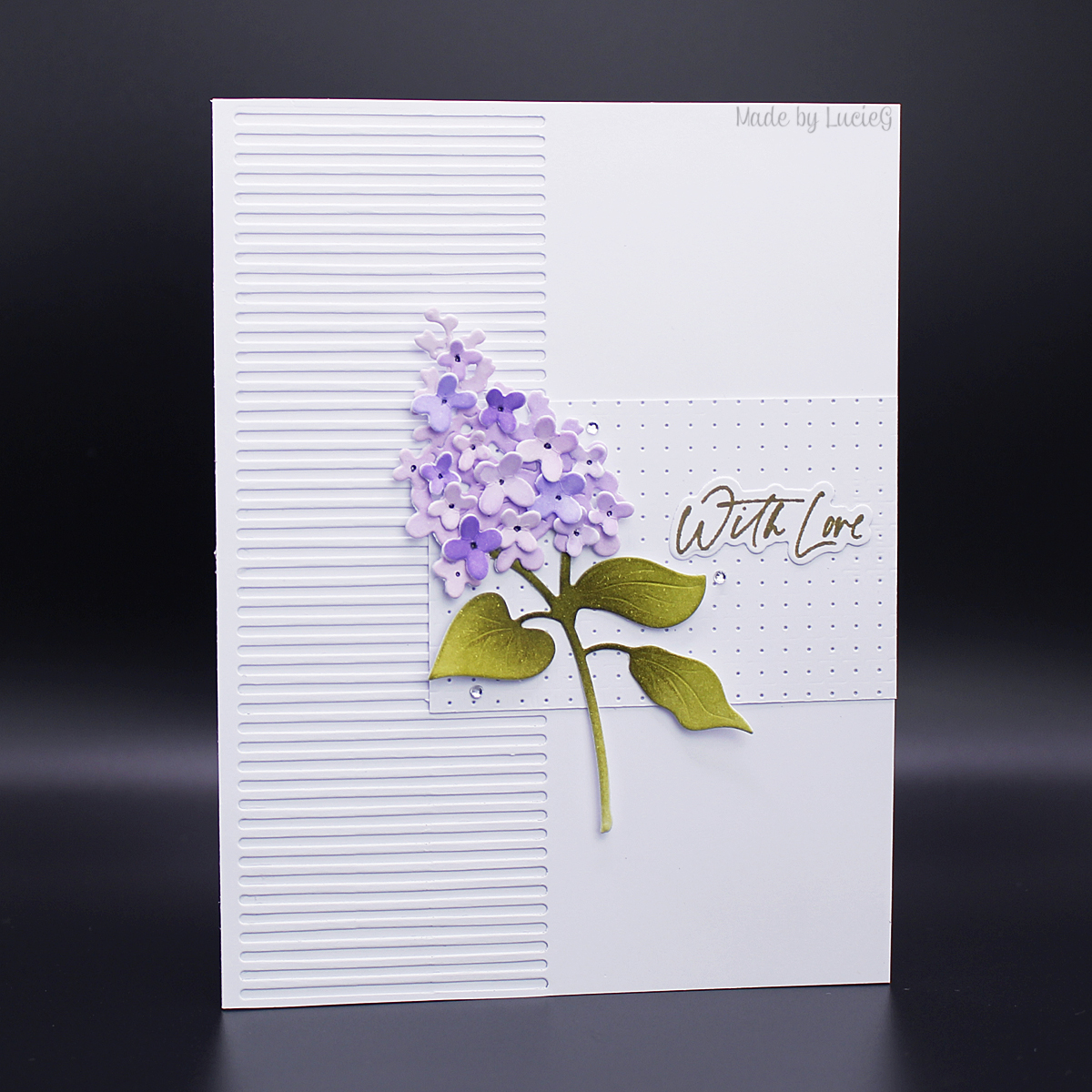 Instead, I pulled out The Greetery’s Wheat botanicuts set and cut it from white regular card and cream pearlescent card. I coloured the white card with Antique Linen distress oxide ink and I dusted the pearlescent card with the same ink for extra depth of colour. I mixed the two types of card when assembling the heads of the wheat stems.