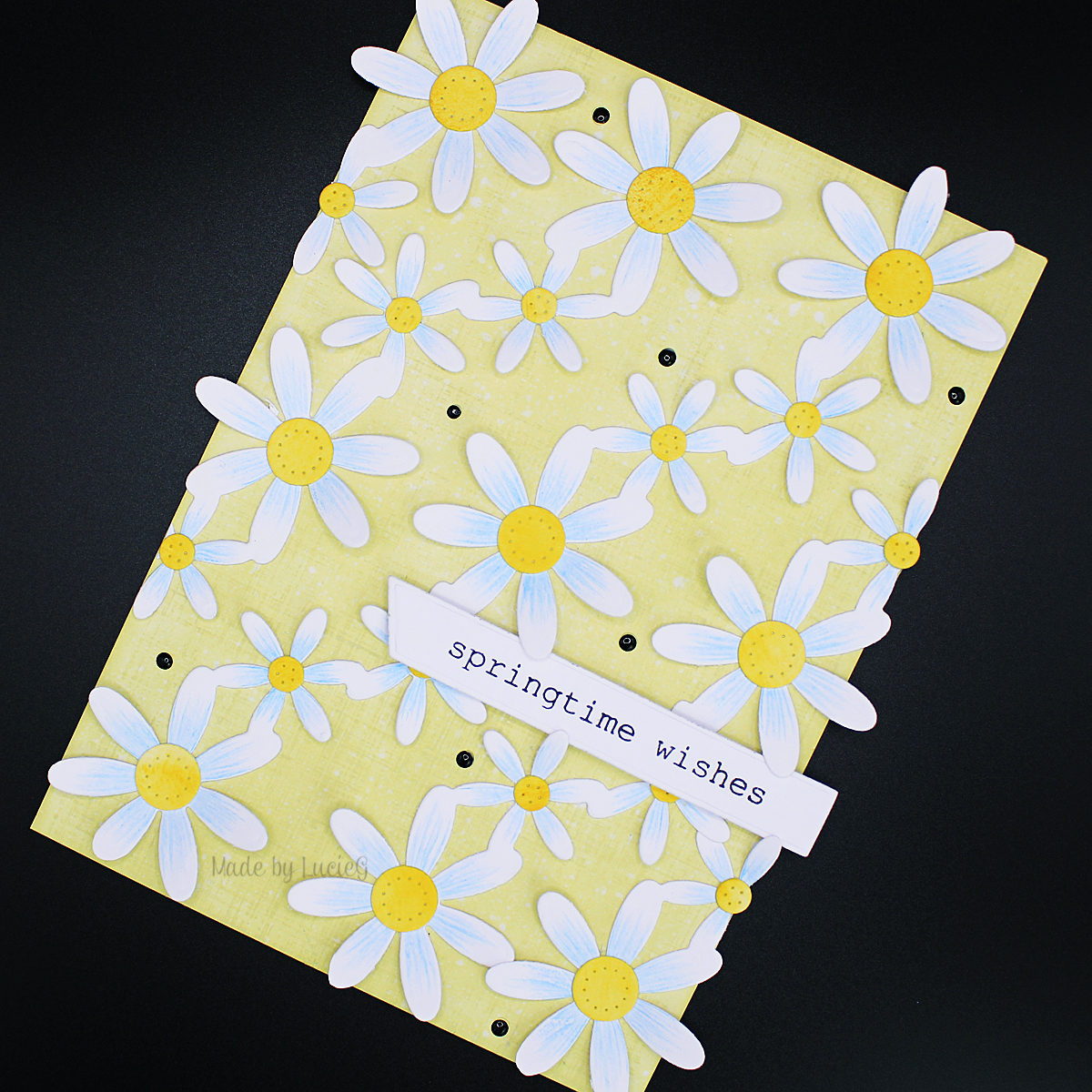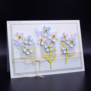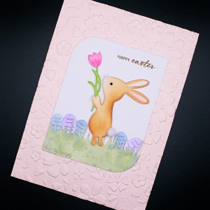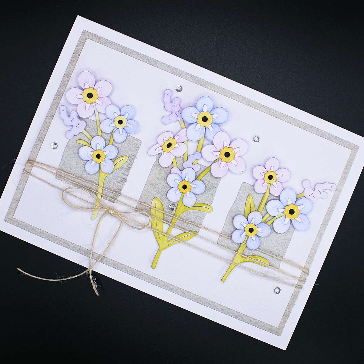 I adheered all the elements to a background that I had embossed with a Spellbinders folder and added a few gems to complete my card.