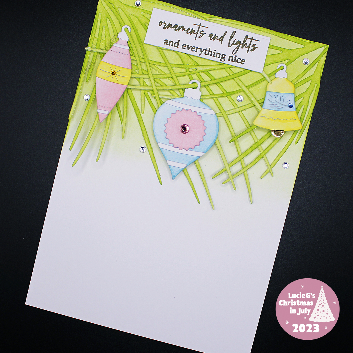I decided to play with a lot of my Black Friday crafty bargains – the Noel is from the Tim Holtz/Sizzix Winter Big Tidings die set and the foliage is from the Festive Gatherings set. I also used the new-to-me Garden Tub by The Greetery which I cut from gold pearlescent card which I had spritzed with Tumbled Glass distress oxide spray.