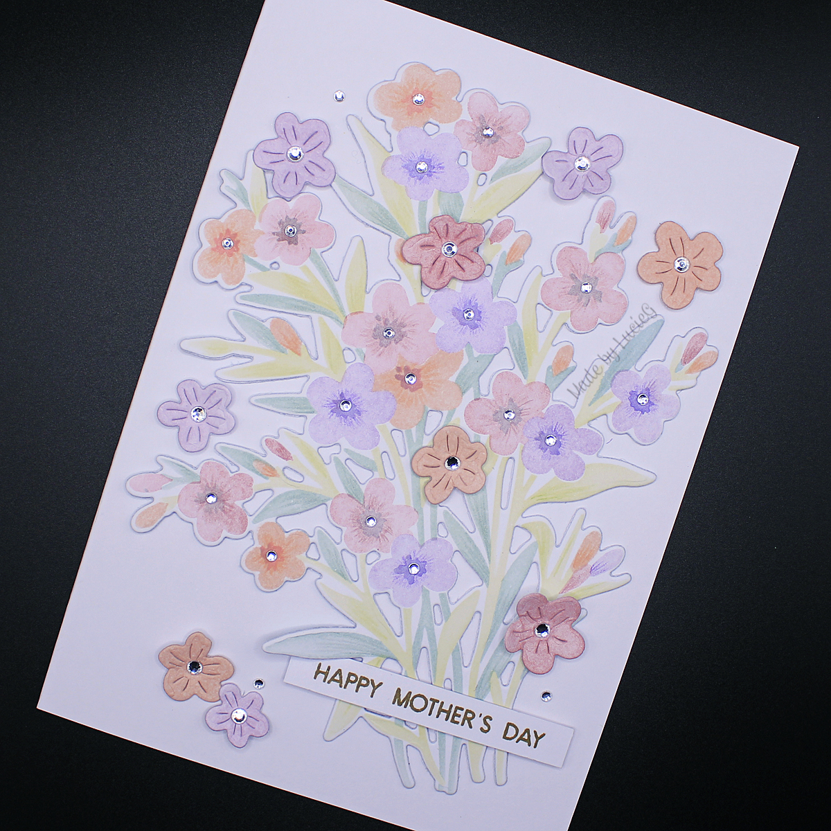 The background embossing folder is by Spellbinders and the sentiment is by Clearly Besotted.