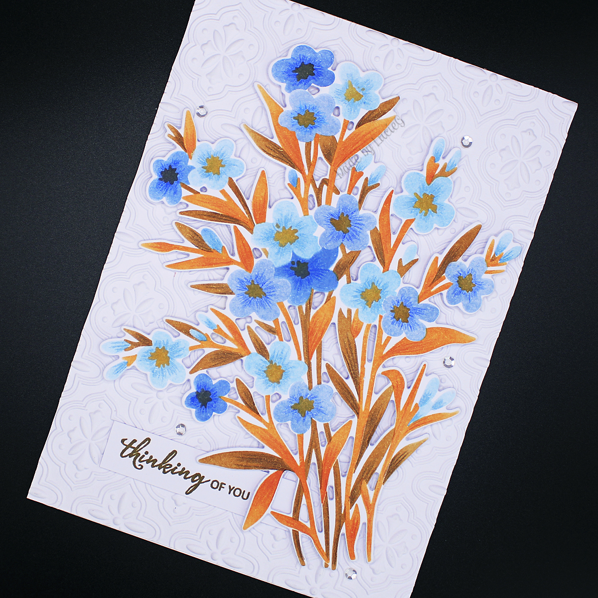 Today I’m playing along with the Color Throwdown which has a fabulous combo of blue, rust and brown. It’s all change at my favourite colour challenge this week as the team welcome the talented Kelly! The team is always pretty stable but somehow I missed the farewell to Barbara, I loved her amazing takes on the colours. Many congrats Kelly on joining the amazing DT!