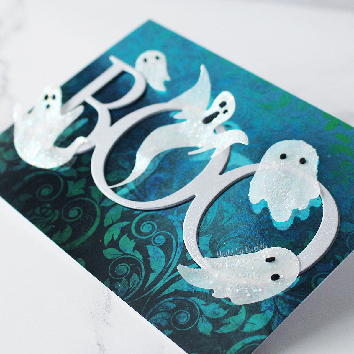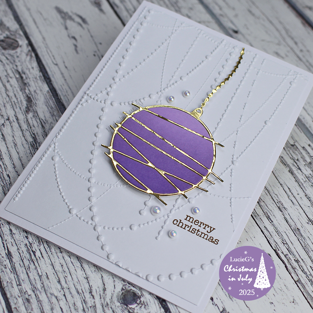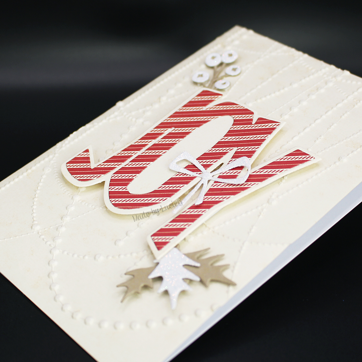 As you can see, my own spin this time is to use a snowflake instead of the rectangle shape on the background strip. The dies I used are by Tim Holtz/Sizzix, My Favorite Things, Reverse Confetti and Spellbinders. So many companies on one little CAS card!