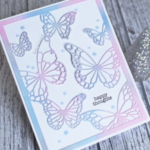 I had fun with this one! As the challenge spans Valentine’s Day, I knew I wanted to include that in some way as well as creating a scene. Inspired by this cute Frantic Stampers kitties die, I used Funky Fossil Designs’ Dry Stonewall stencil for the kitties to sit on and then softly blended some distress ink to create the moonlit sky. To complete my card, I added a few die cut hearts and my favourite Reverse Confetti sentiment – which I use every February without fail!