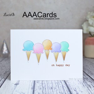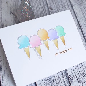I used the older Ice Cream Parade die from Simon Says Stamp for the main image and coloured the cones and ice cream sections using my distress inks.