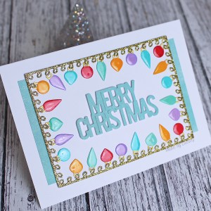 This card came together very quickly – I simply blended some distress ink on my card base, adhered the die cut and then added a Tonic die cut sentiment cut from holographic paper (so difficult to photograph!) and a few little stars!